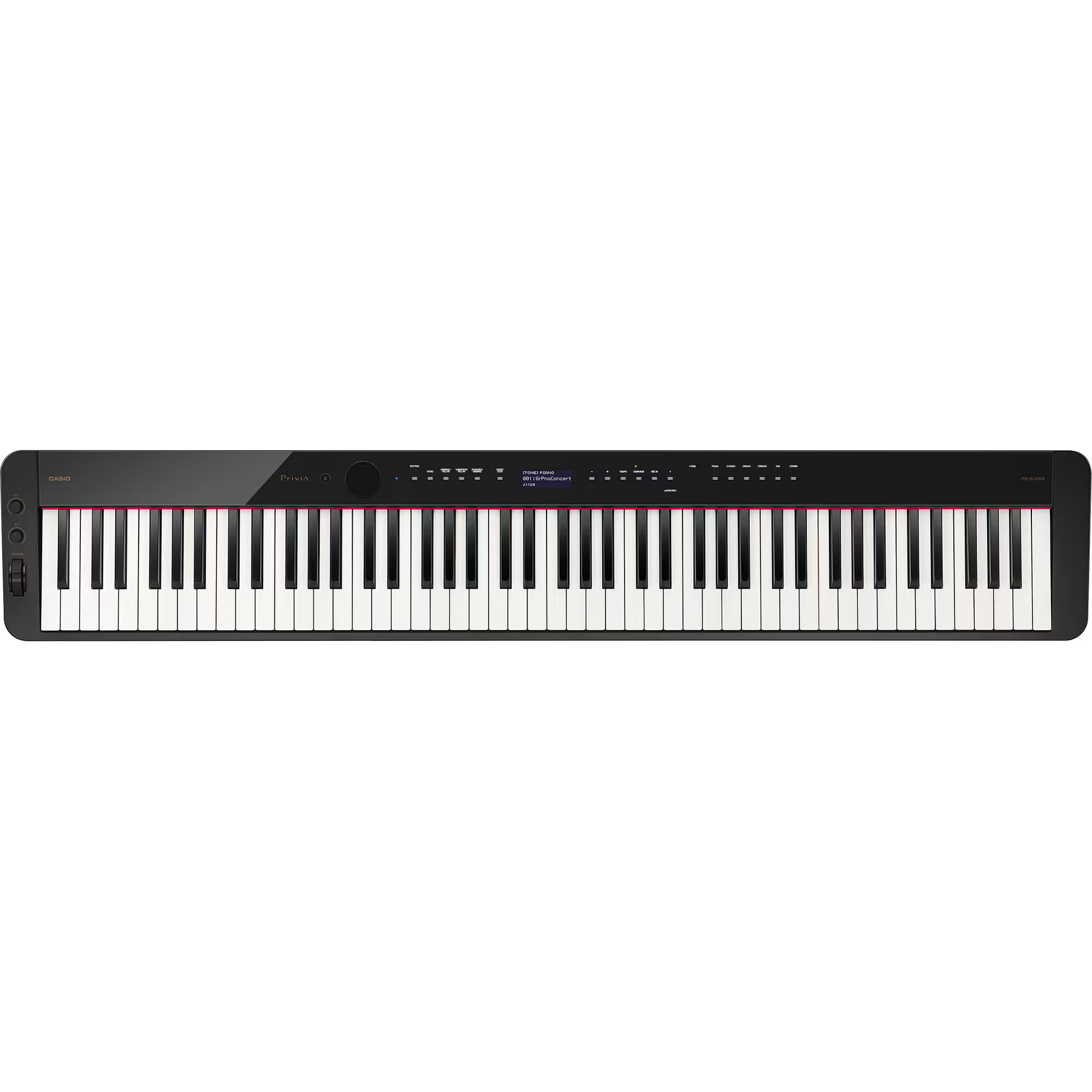The Casio PX-S3100 Black is a portable digital piano with an 88-key stepped hammer-action keyboard, offering adjustable touch response across 5 levels. It incorporates AiR Multidimensional Audio Transformation technology with 192-voice polyphony and offers 700 voices as well as 200 rhythms and auto-accompaniment patterns.