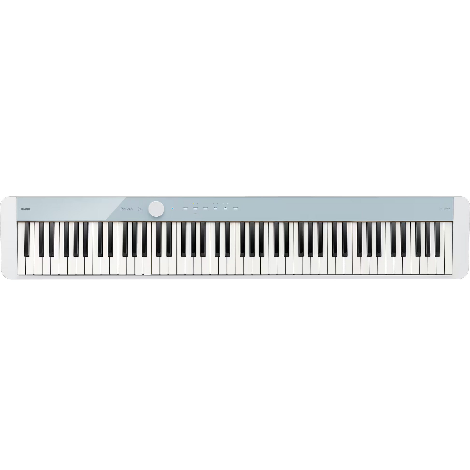 The Casio PX-S1100 Calm Blue is a portable digital piano with an 88-key stepped hammer-action keyboard. It incorporates AiR multidimensional transformation technology for enhanced sound quality and 192-note polyphony. This model offers 18 different voices, lesson functions, and a MIDI and audio recorder for comprehensive and flexible use.