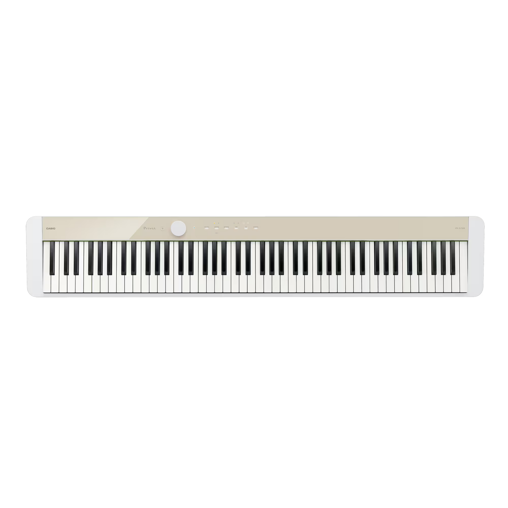 The Casio PX-S1100 Beige is a portable digital piano with an 88-key stepped hammer-action keyboard offering adjustable touch response across 5 levels. It incorporates AiR multidimensional sound technology with 192-voice polyphony and 18 different voices. Designed for discerning musicians, it includes lesson functions, MIDI and audio recording capabilities, and bidirectional power for extended battery life.