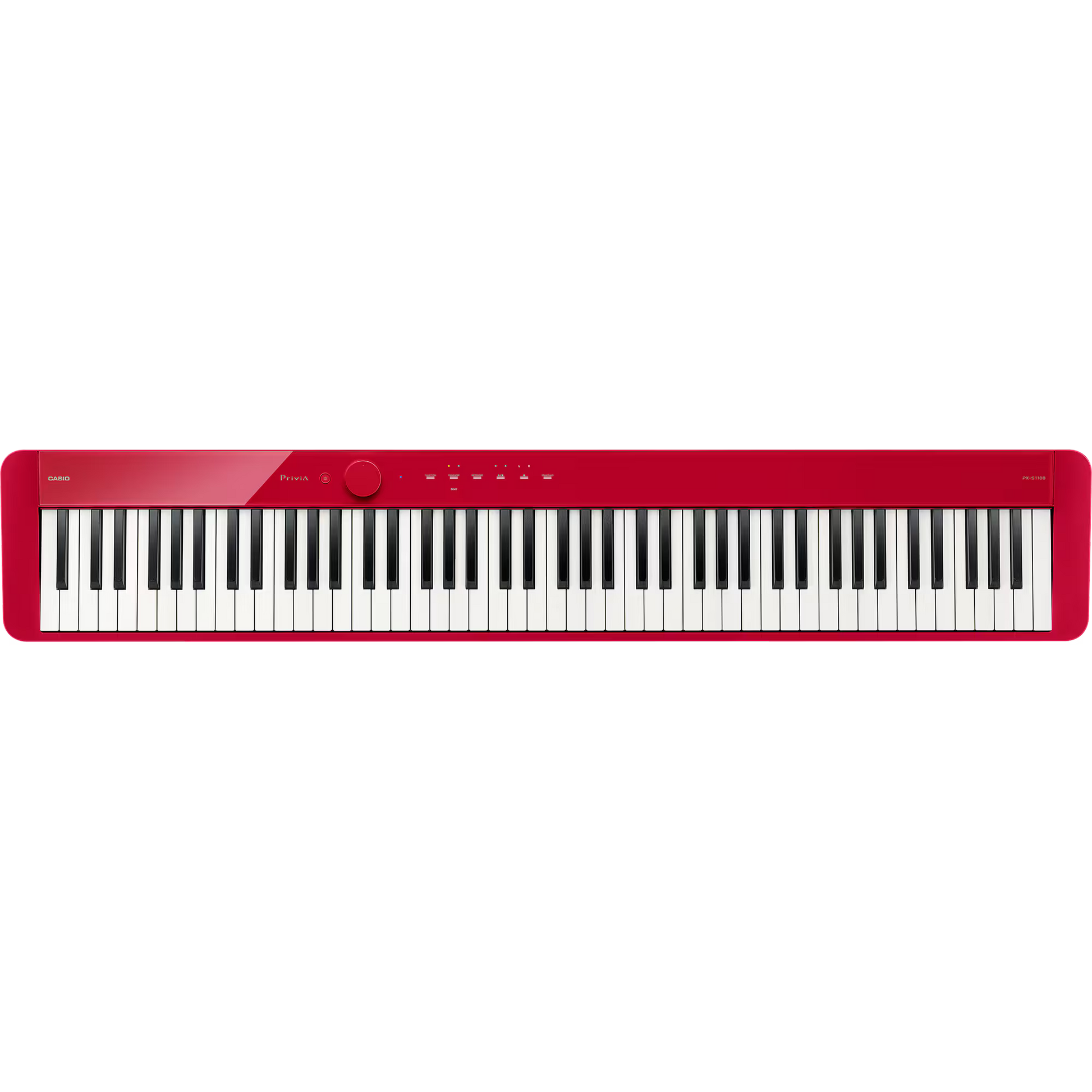 The Casio PX-S1100 Red is a portable digital piano offering an authentic playing experience thanks to its 88-key stepped hammer-action keyboard. It incorporates AiR Multidimensional Audio Transformation technology for a rich and realistic sound, with a high polyphony of 192 voices and 18 varied tones.