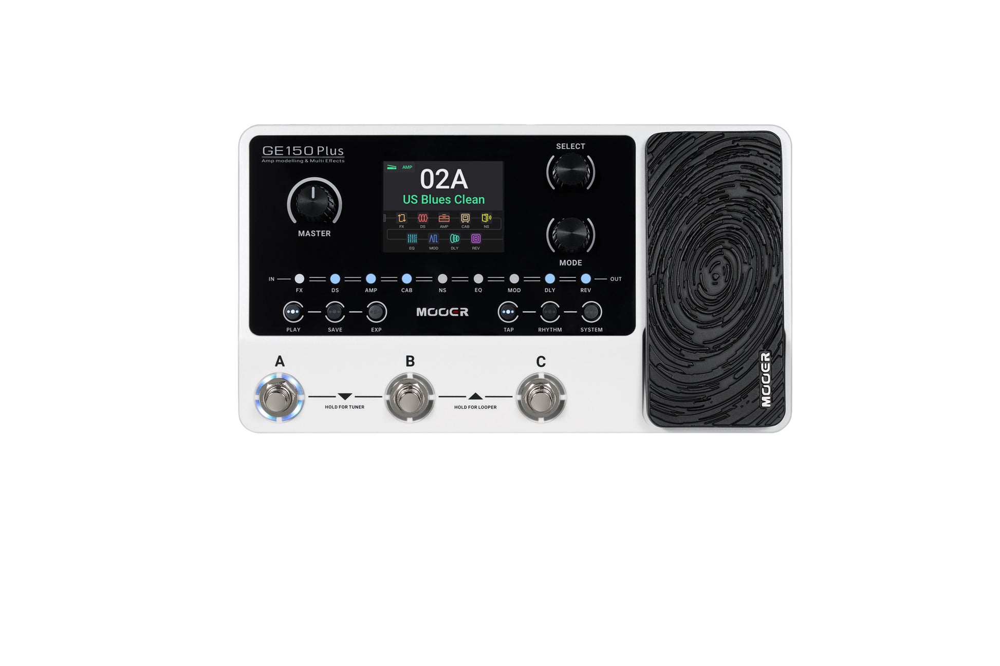 Pédalier multi-effets GE150 PLUS, 55 simulations de préamplis haute-qualité utilisant la technologie de sampling non linéaire pour un ressenti réaliste, prend en charge le chargement de fichiers MNRS (ampli/cab) et de simulations de baffles IR tiers (2048 pts), jusqu'à 198 presets, fonction SPILL-OVER pour un fondu naturel des effets delay et reverb lors du changement de preset, boîte à rythmes 40 patterns, 10 types de métronome, looper stéréo 80 secondes, pédale d'expression intégrée pour le contrôle de paramètres ou du volume de sortie, 3 footswitchs, sorties stéréo (Jack), port USB-C pour édition PC, gestion de données, mises à jour firmware et enregistrement audio sur mobile, entrée auxiliaire, sortie casque, boîtier aluminium, livré avec alimentation 9V et câble USB, dimensions : NC, poids : NC.